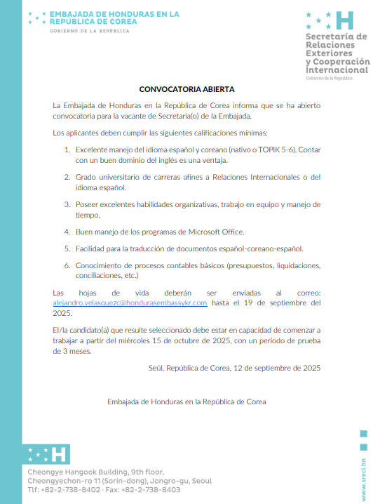Vacante Laboral - Embajada de Honduras en Corea.pdf